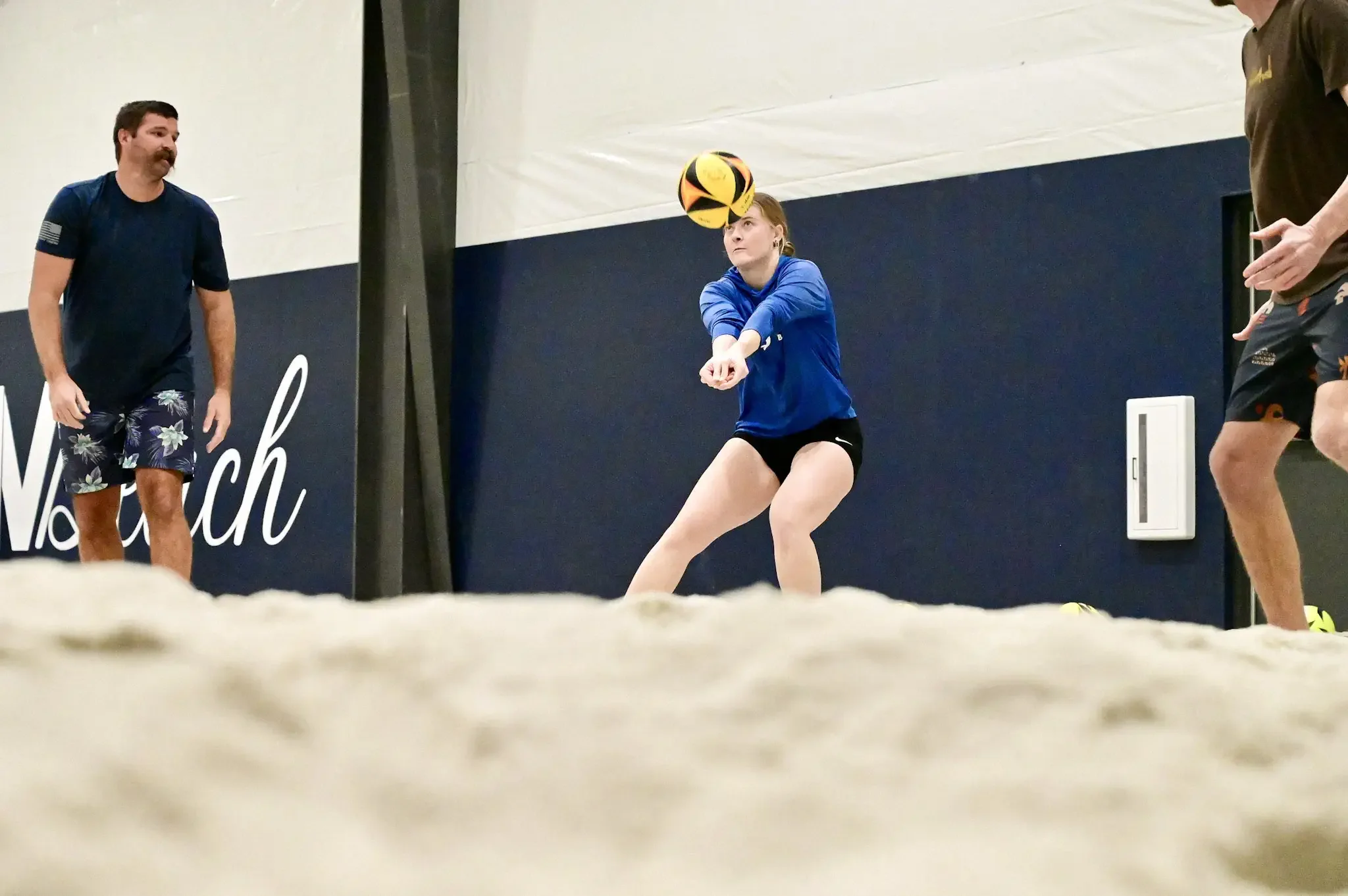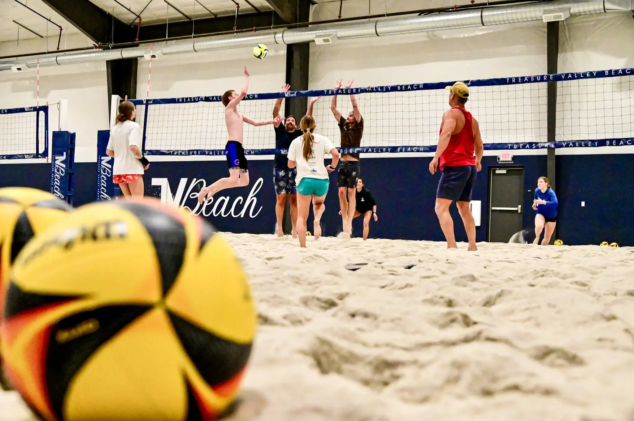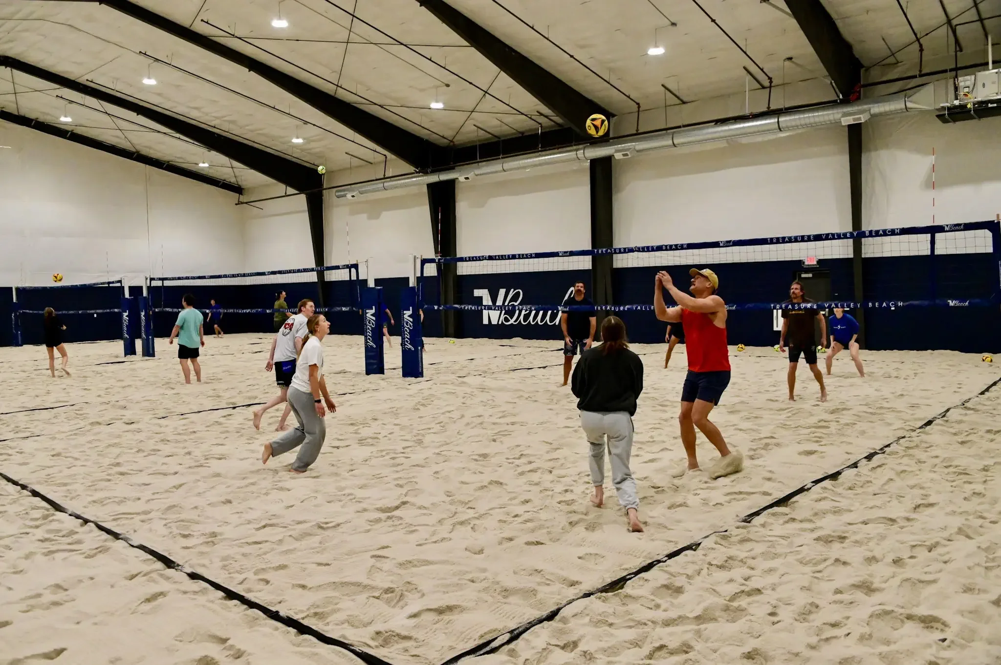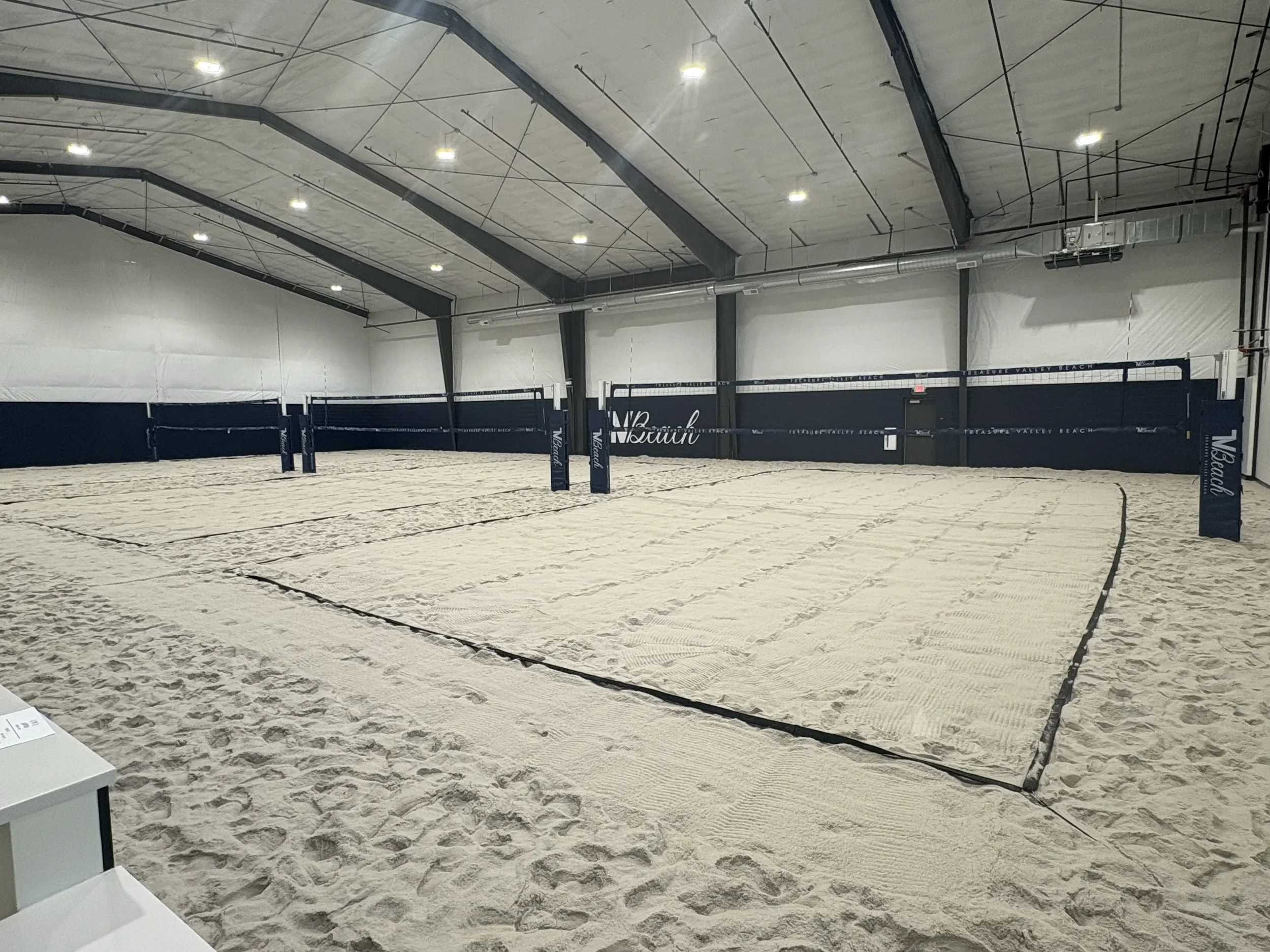 Indoor, climate-controlled beach volleyball.